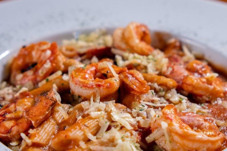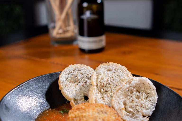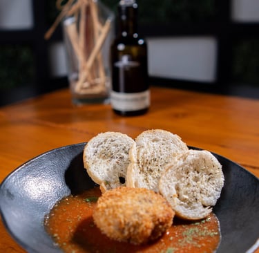 Polpete ao molho pomodoro, acompanhado por torrada.